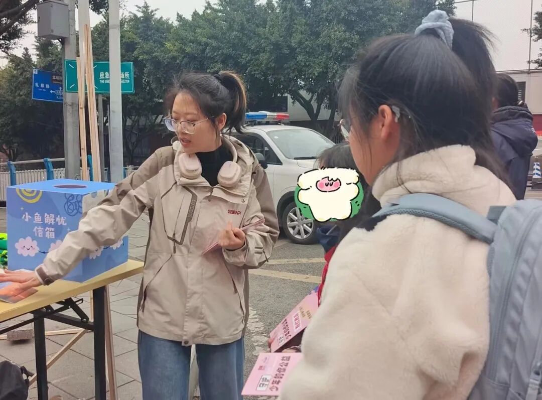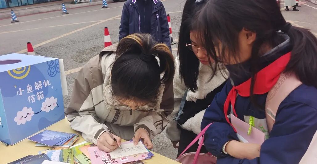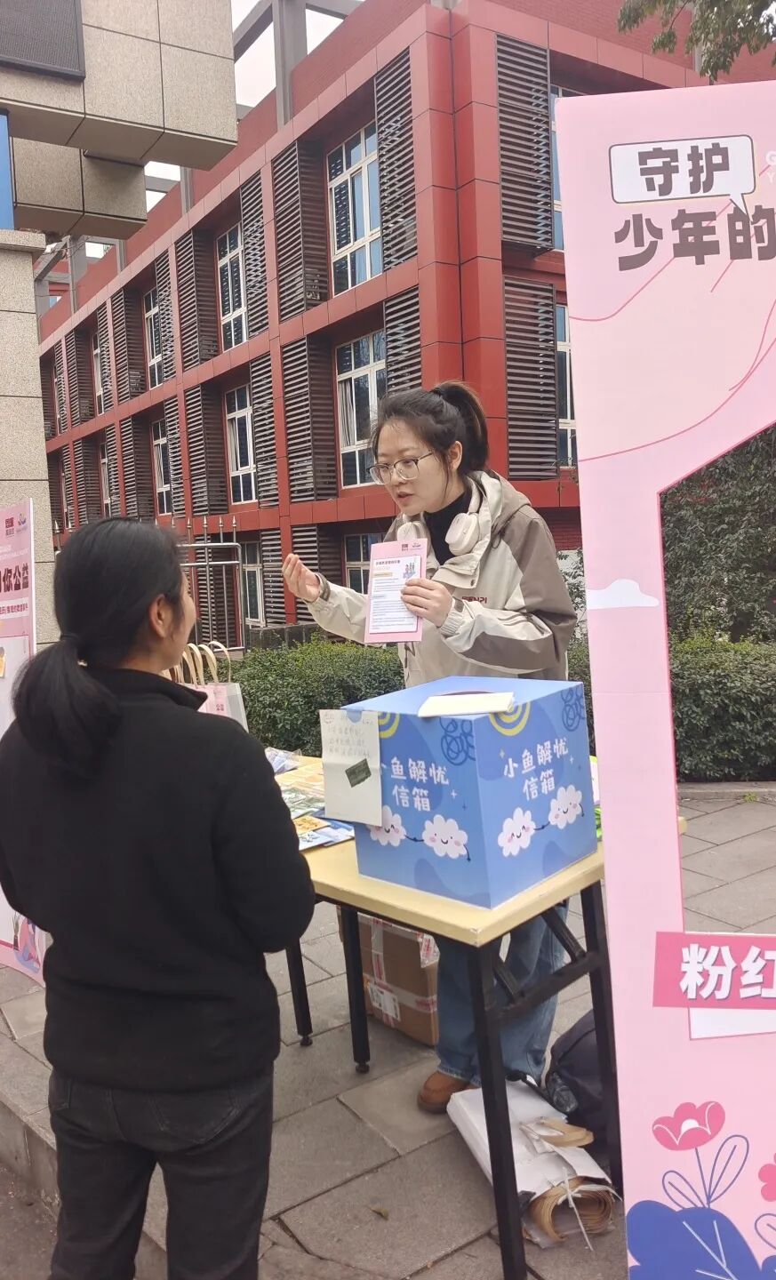 这次守护少年的你:粉红救兵,让每一个孩子免受欺凌项目在富安社区和礼嘉中学的支持下,来到学校门口,开展校园反欺凌开放日。我们这一次的互动同学,普遍为11岁-14岁的青春期学生,欺凌事件也趋于复杂,为了保护学生的隐私,更好的倾听学生反欺凌的心声,我们在现场设置了“小鱼解忧邮箱”和信纸,方便学生投递关于欺凌和反欺凌的故事。