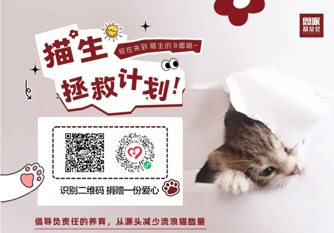 请关注恩派基金会“猫生拯救计划”~ 捐赠您的一份爱心,让流浪猫们拥有不一样的喵生~
