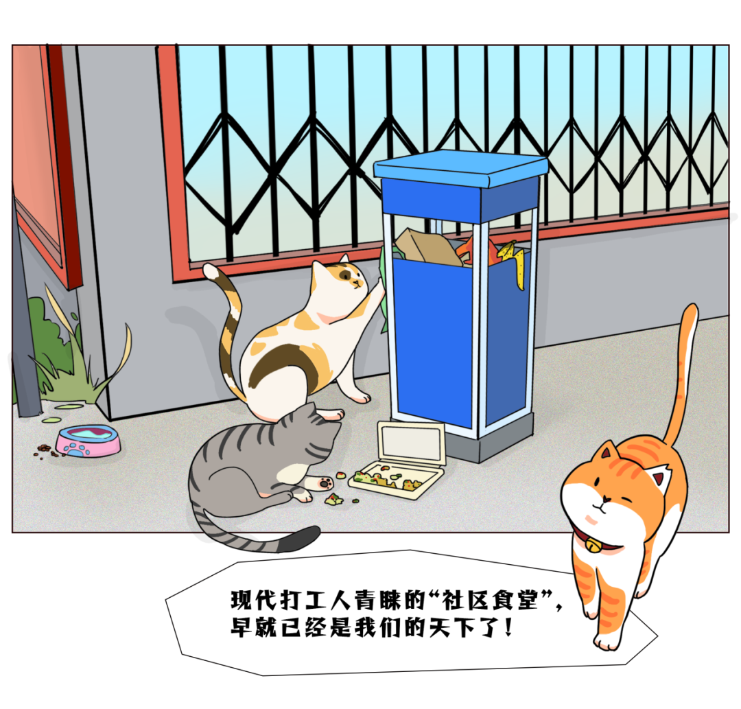 一般来说,我们都会在小区的垃圾桶解决我们的晚餐。因为人们晚上经常都会把吃剩的食物扔进去。而小区垃圾桶一般比较大,更好找食物。