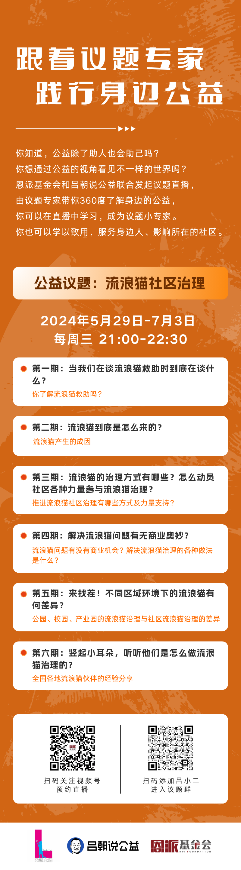 因此,恩派基金会和吕朝说公益联合发起系列议题直播,带你360度了解身边的公益,你可以在直播中学习,成为议题小专家,也可以学以致用,服务身边人、影响所在社区。