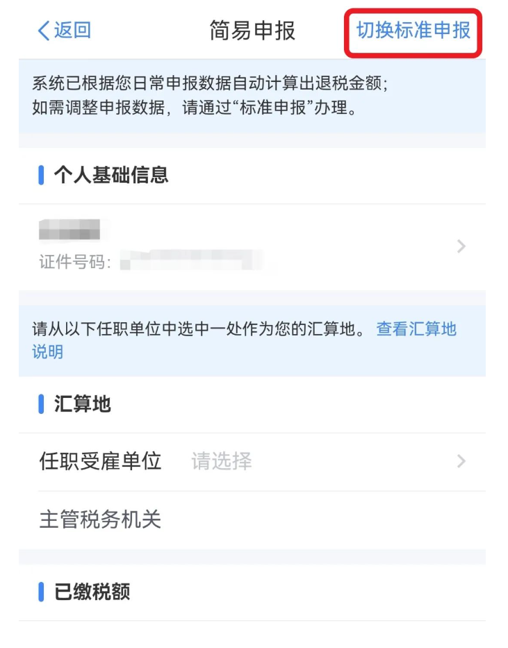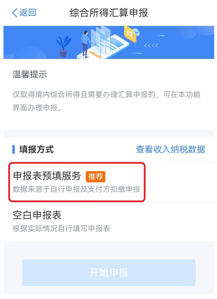 第一步:打开APP——个人所得税,点击【开始申报】,后点击【切换标准申报】,推荐【申报表预填服务】,相较更加便捷。