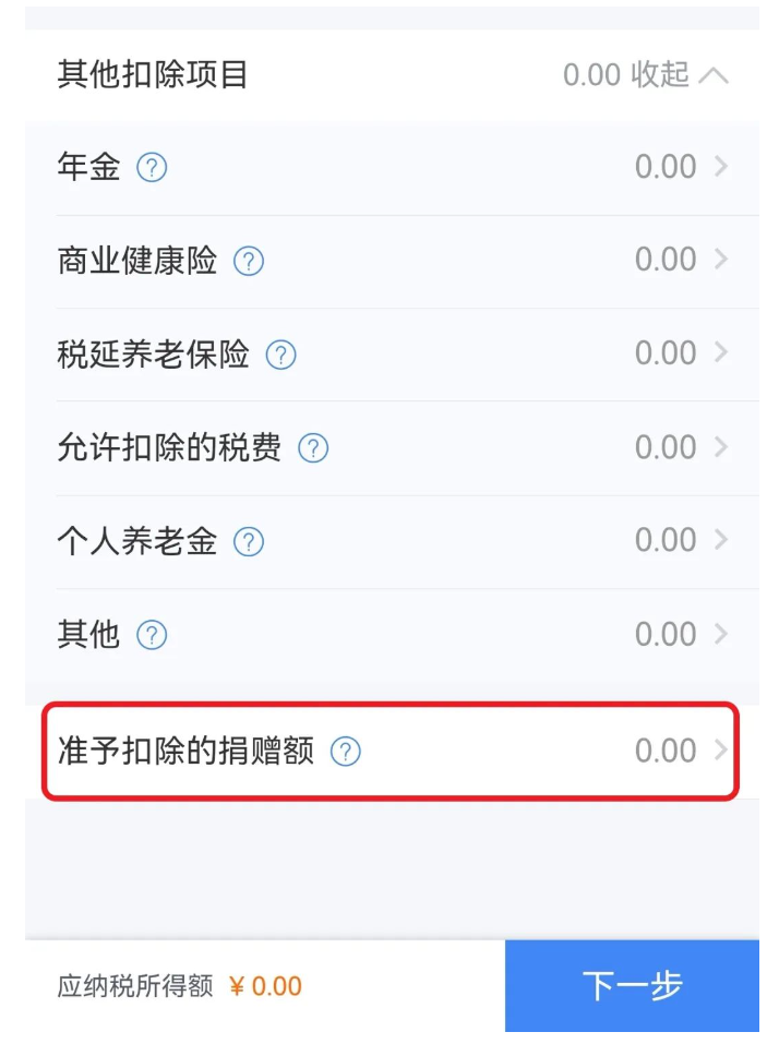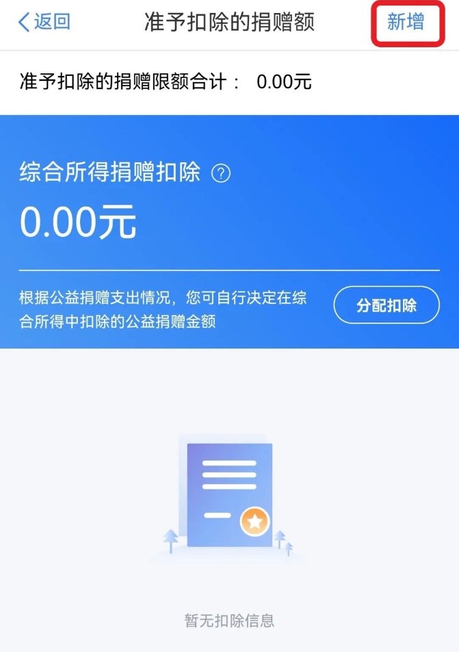 第二步:在“收入和税前扣除”界面,确认数据无误后,下拉,点击【准予扣除的捐赠额】,后点击右上角【新增】。